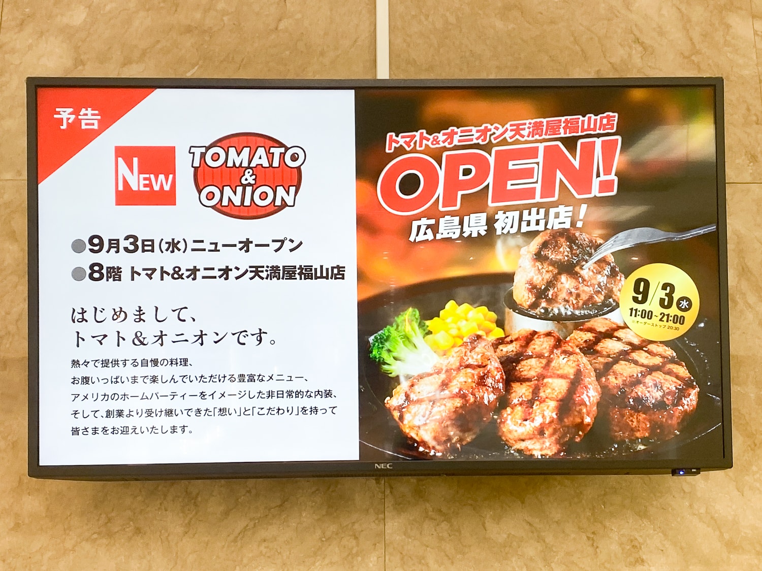 人気のレストランチェーン『トマト&オニオン』が、福山市に2025年(令和7年)9月3日(水)にオープン!
